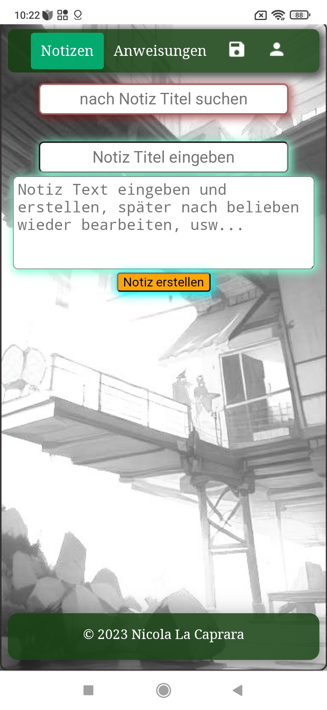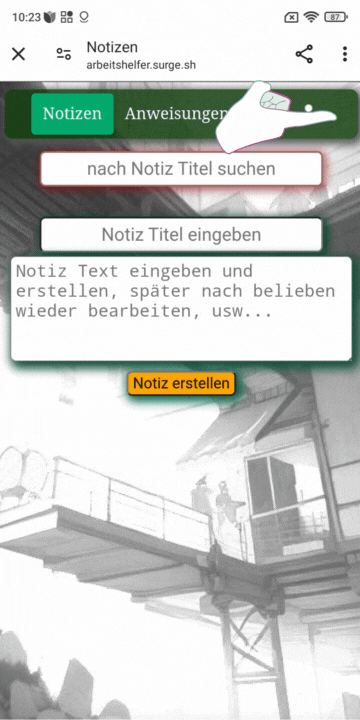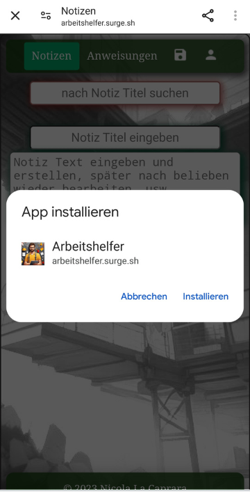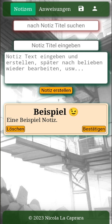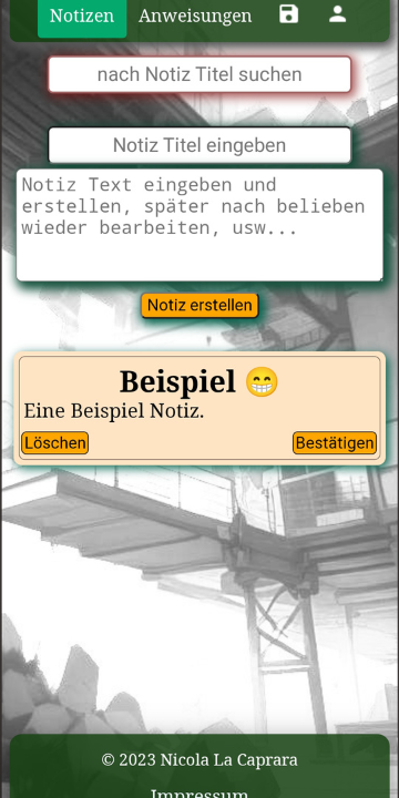 Das war meine erste App, eine PWA-App für Notizen und Arbeitsanweisungen.